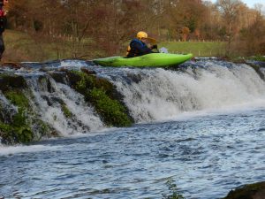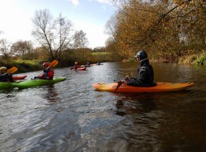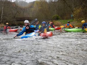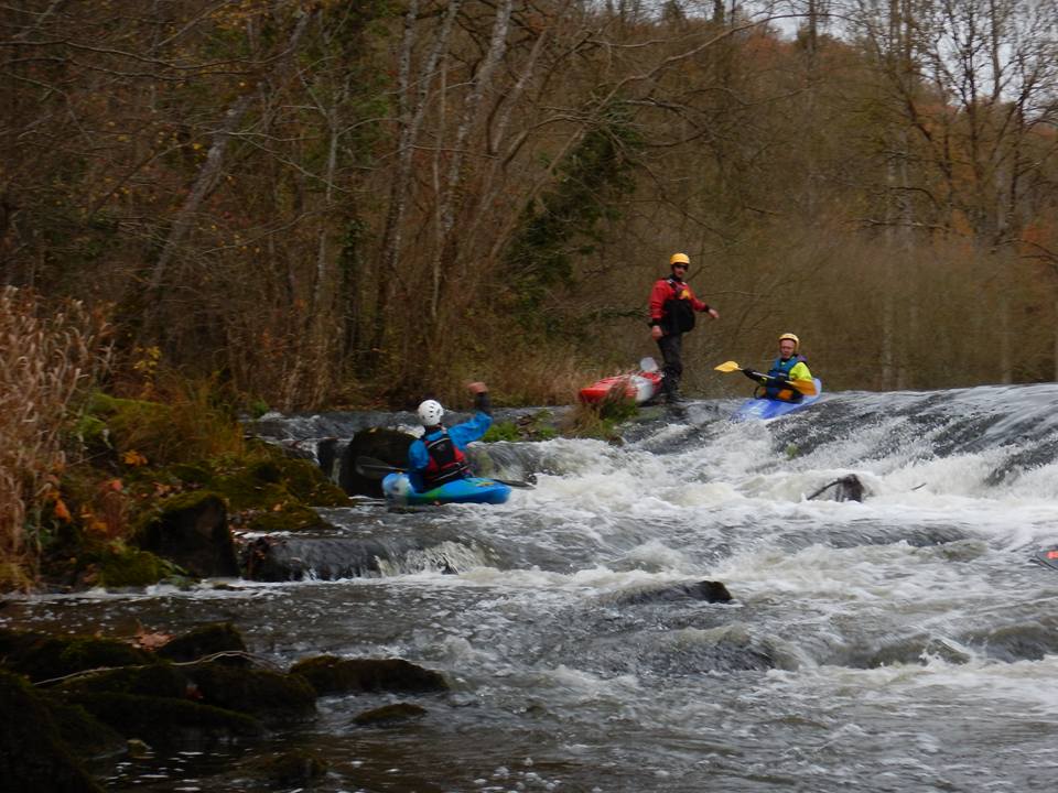 A10h00 arrivée sur place à Moulins le Carbonnel, dans les Alpes Mancelles, rapide changement car la température ne dépasse pas les 4° mais le soleil est de la partie, ce qui maintient les sourires en place. La descente fut ponctuée de rapides en tout genre, premières émotions en eaux vives pour certains, légères frustrations pour d’autres car le niveau d’eau est particulièrement bas pour la saison, les reliefs promis n’étais pas au RDV. Après 3h30 de navigation nous sommes arrivés à Saint Léonard des Bois, nous avons pu alors déguster quelques gateaux maison autour de quelques tasses de thés et cafés bien chaudes. Bravo au 15 participants, la prochaine sortie aura lieu le week end du 16 et 17 Décembre 2017 sur la Loire Bourguignonne autour de Nevers.