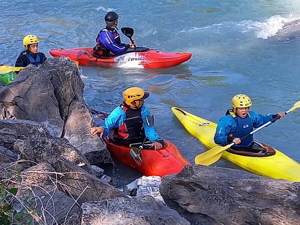Descendre la durance en kayak au cœur des paysages sauvages des Hautes-Alpes, sauts ou bains bien fraîs et franches rigolades