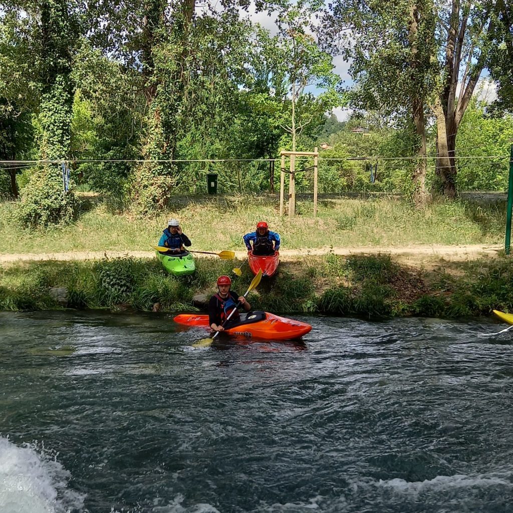 Au programme, descentes de bassin en kayak, nage en eaux vives, des traversées de courant, des surfs sur les vagues… et des bains parfois 😉